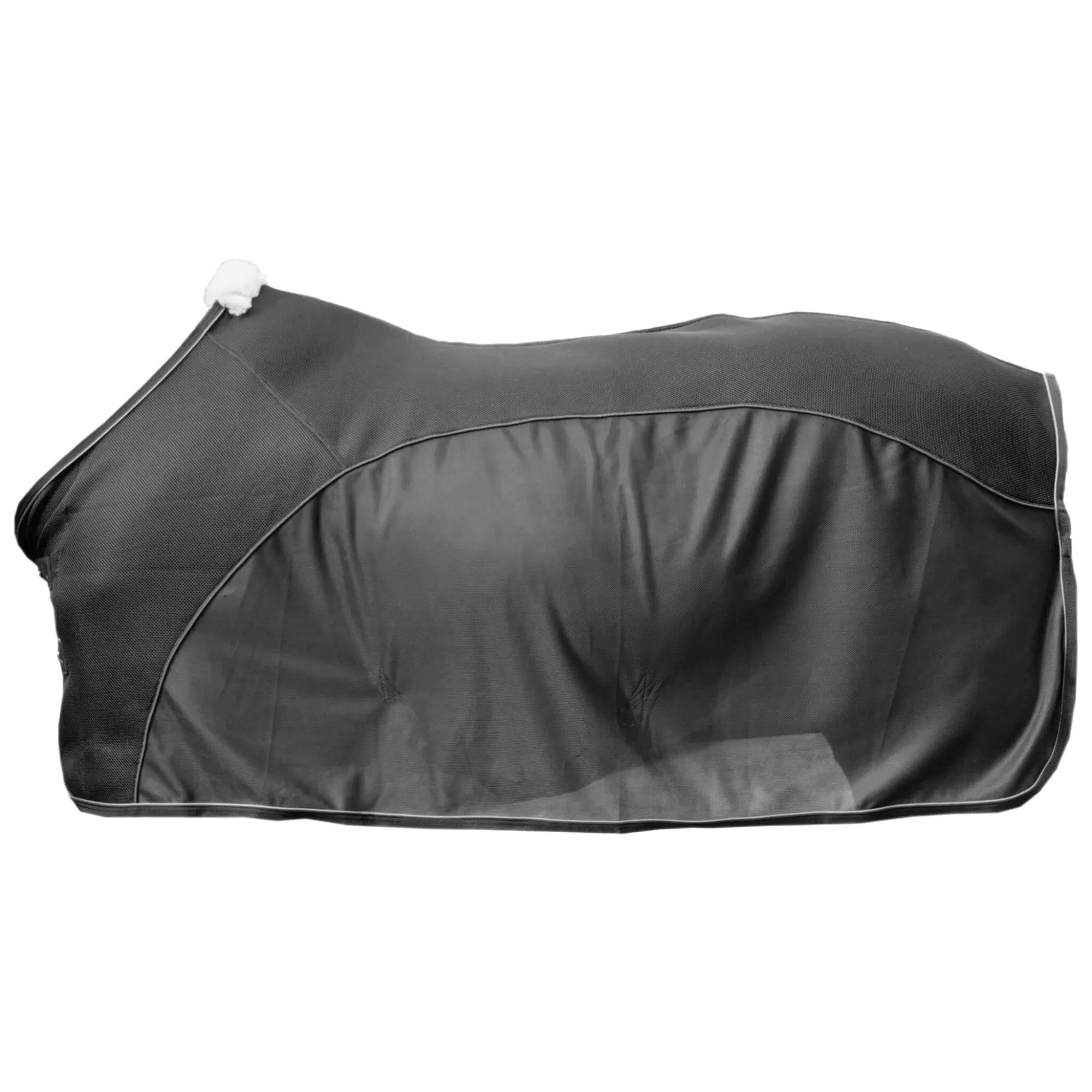 Die Mesh Abschwitzdecke von Kentucky Horsewear ist ein echtes Allround-Talent. Sie kombiniert gleich mehrere Anwendungsmöglichkeiten in einem. So kann sie dank des leichten und atmungsaktiven Materials ideal zum Trocknen nach dem Reiten oder Duschen Ihres Pferdes verwendet werden. Außerdem kombiniert diese Decke die Eigenschaften einer Fliegendecke mit dem 3D-Spacer-System. Auf der Innenseite besteht die Decke aus dem 3D-Spacer, einer leichten, aber starken Wabenstruktur, welche Schweiß absorbiert und Ihr Pferd trocken hält. Der untere Teil der Decke besteht aus Mesh-Material, welches Fliegen fernhält und zusätzlich die Luftzirkulation unterstützt. So kann Ihr Pferd langsam herunterkühlen. An der Decke sind abnehmbare Gurte angebracht, so dass die Decke bei Bedarf in eine Turnierdecke umgewandelt werden kann. Für eine ideale Passform ist die Decke anatomisch geformt und an der Schulterpartie flach gefüttert. Für zusätzlichen Tragekomfort ist am Widerrist ein künstliches Schaffell angebracht. Außerdem wurde das Material speziell so entwickelt, dass keine Haare daran hängen bleiben. Die braunen Paspeln und das Kentucky-Logo aus Kunstleder runden den edlen Look dieser tollen Decke ab.
