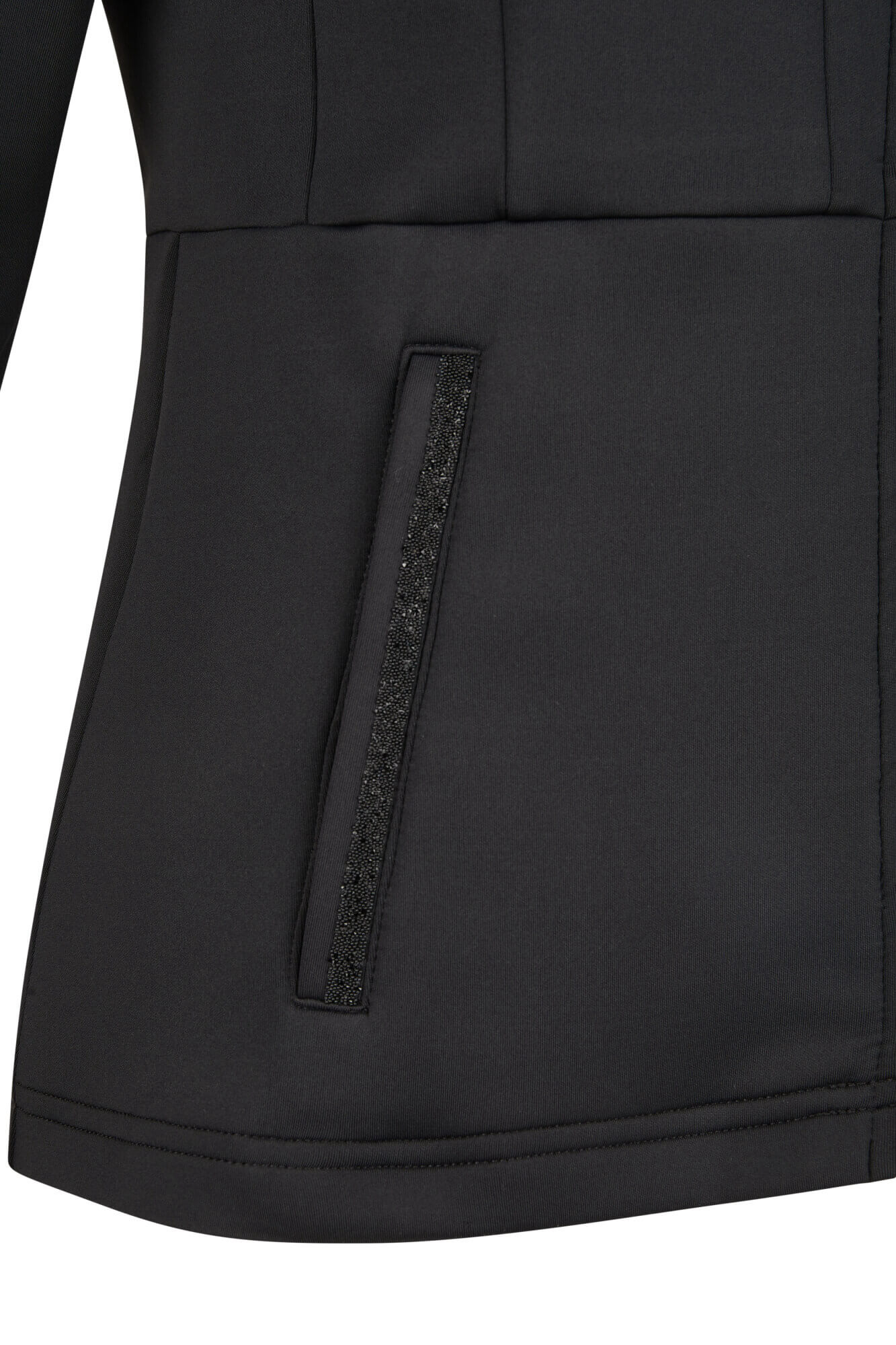 • Crystalpearls auf den Leistentaschen und an den Ärmelbündchen als Pikeur Schriftzug