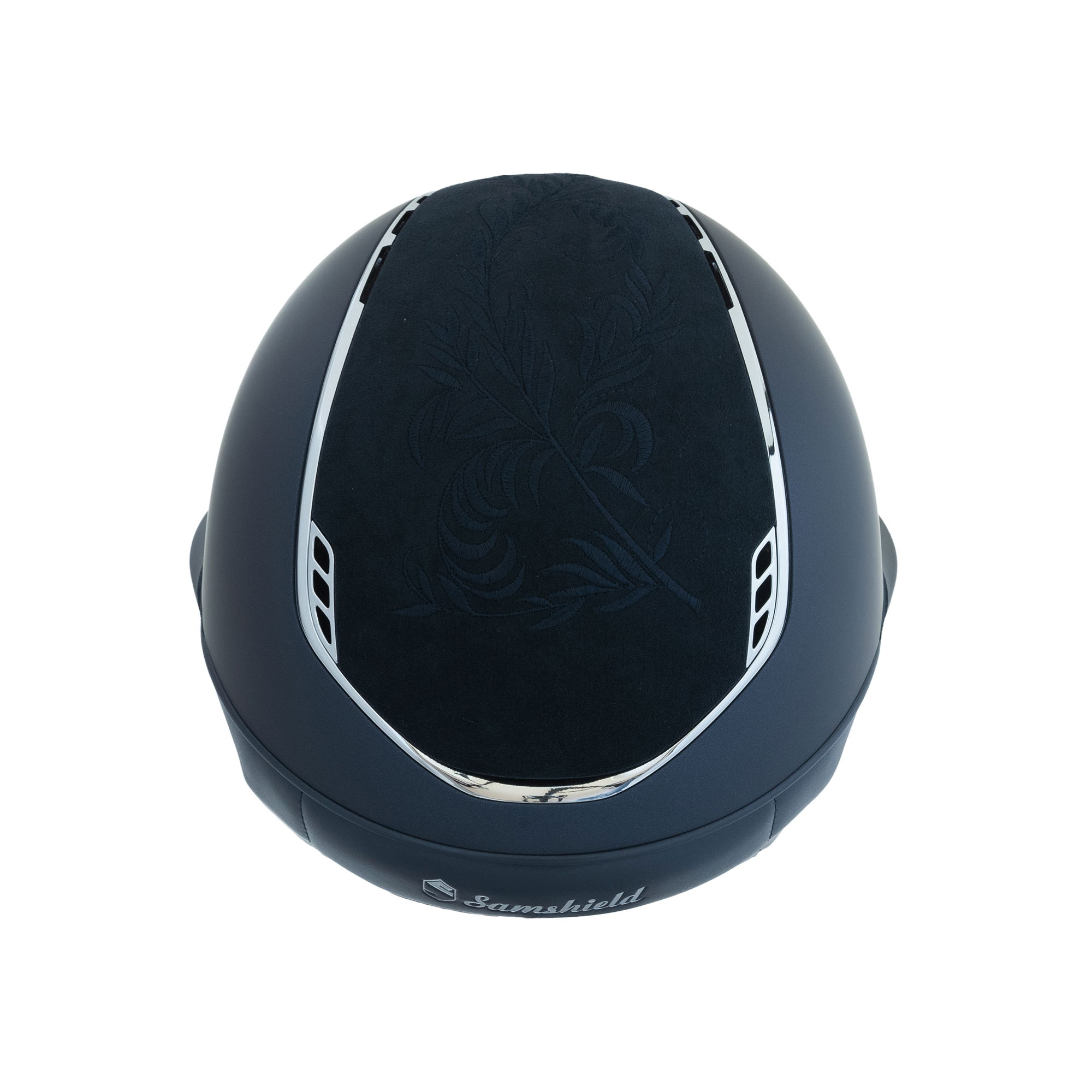Samshield Reithelm Miss Shield 2.0 Shadowmatt, Top + Frontal Band Flower Embroidery Trim Chrome Silver Blason Crystal Fabric Silver