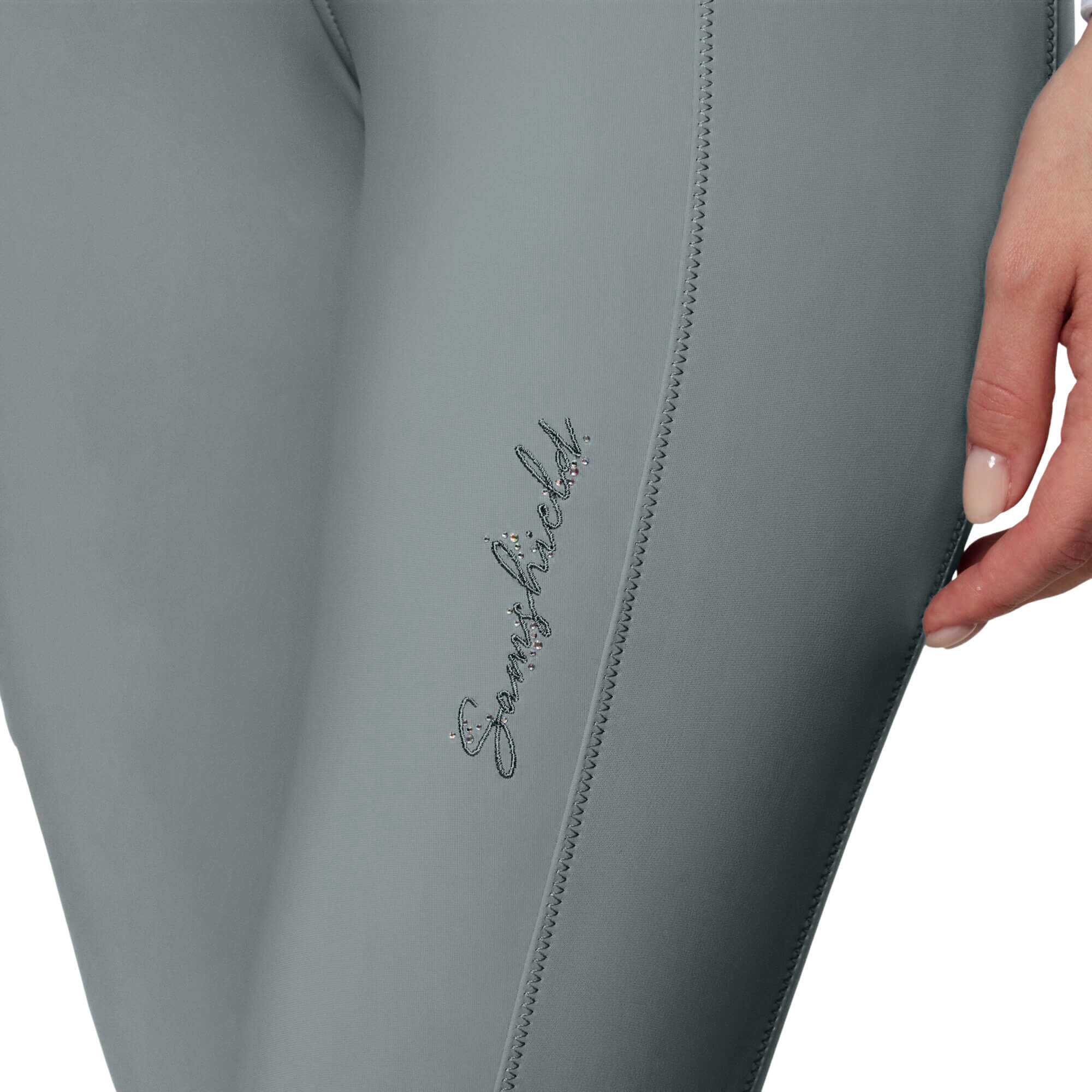 - Samshield-Stickerei mit Swarovskidekor am Oberschenkel